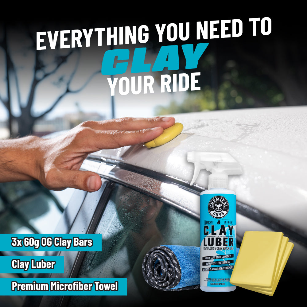 Easily remove stubborn embedded contaminants and pollutants that leave your paint. glass. wheels. and more looking dull and feeling rough. The Complete Clay Kit includes everything you need to restore your ride’s surfaces to a stunning. smooth as glass. mirror-like shine.