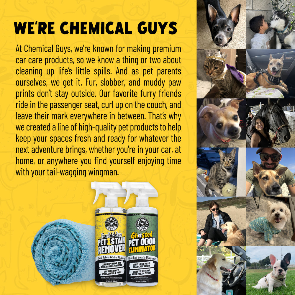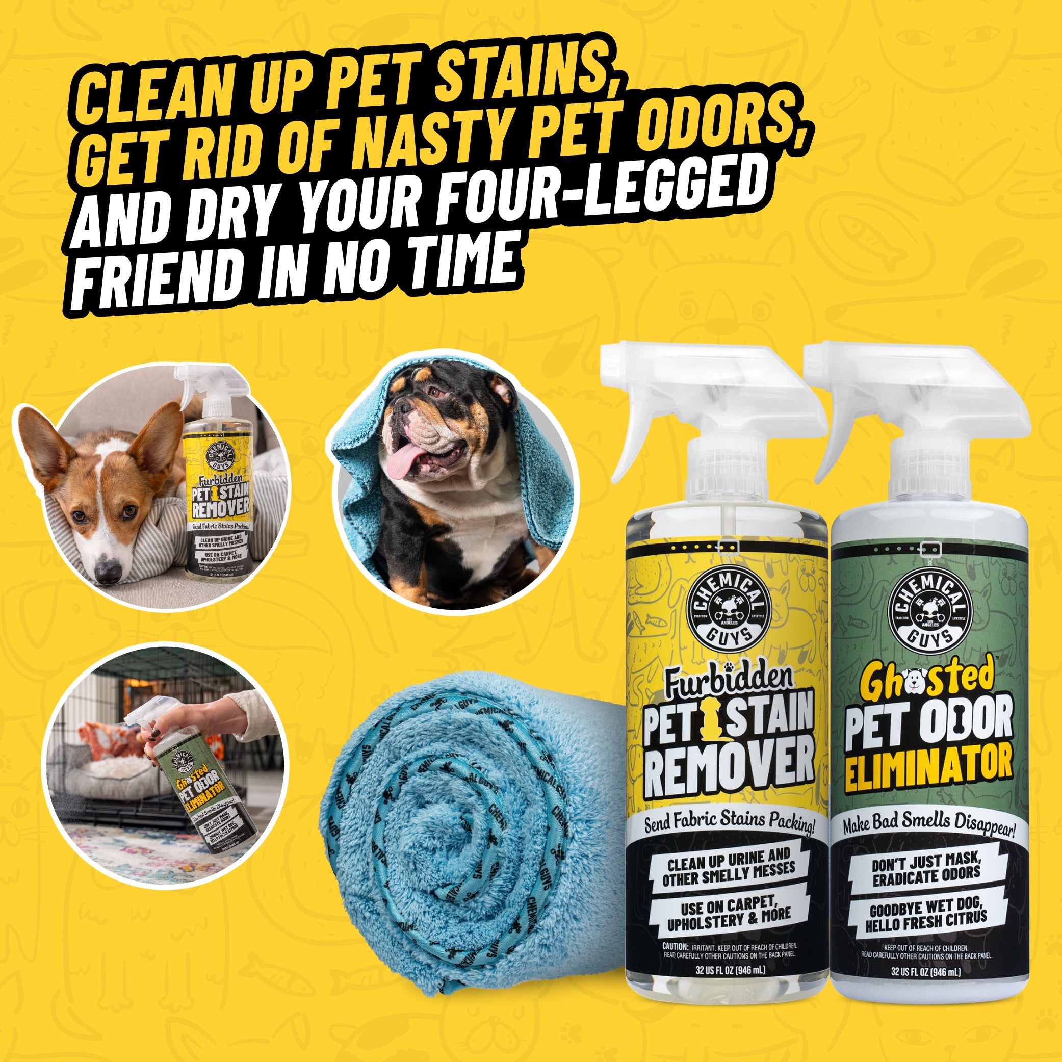 Clean up stubborn pet stains. banish nasty pet odors right at their source. and get your four-legged friend dry as a bone in no time with this set of three premium pet products.