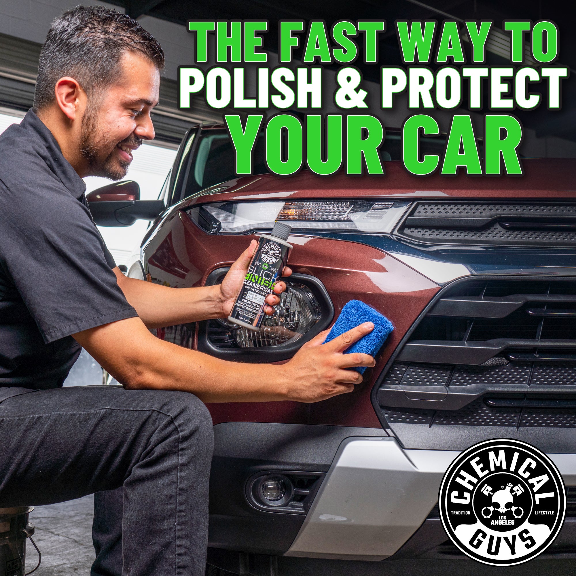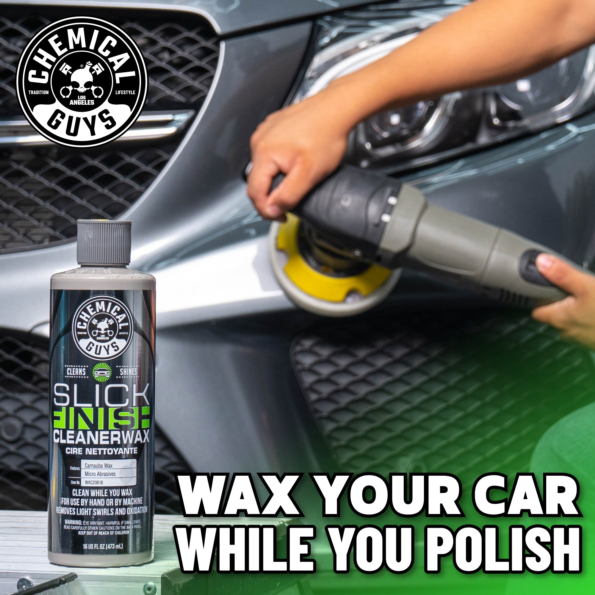 Slick Finish is a hybrid cleaner wax that leaves a brilliant shine. provides durable protection. and removes light swirls. stains. and imperfections??all in one step.