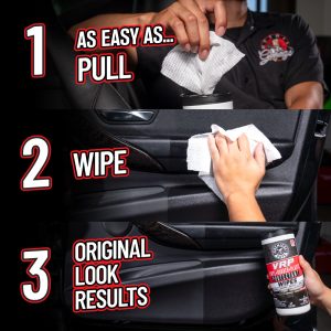 These extra-large. heavy-duty. ready-to-use pre-moistened wipes feature an advanced high-performance texture weave that restores treated surfaces leaving them with a glossy shine and a layer of protection.