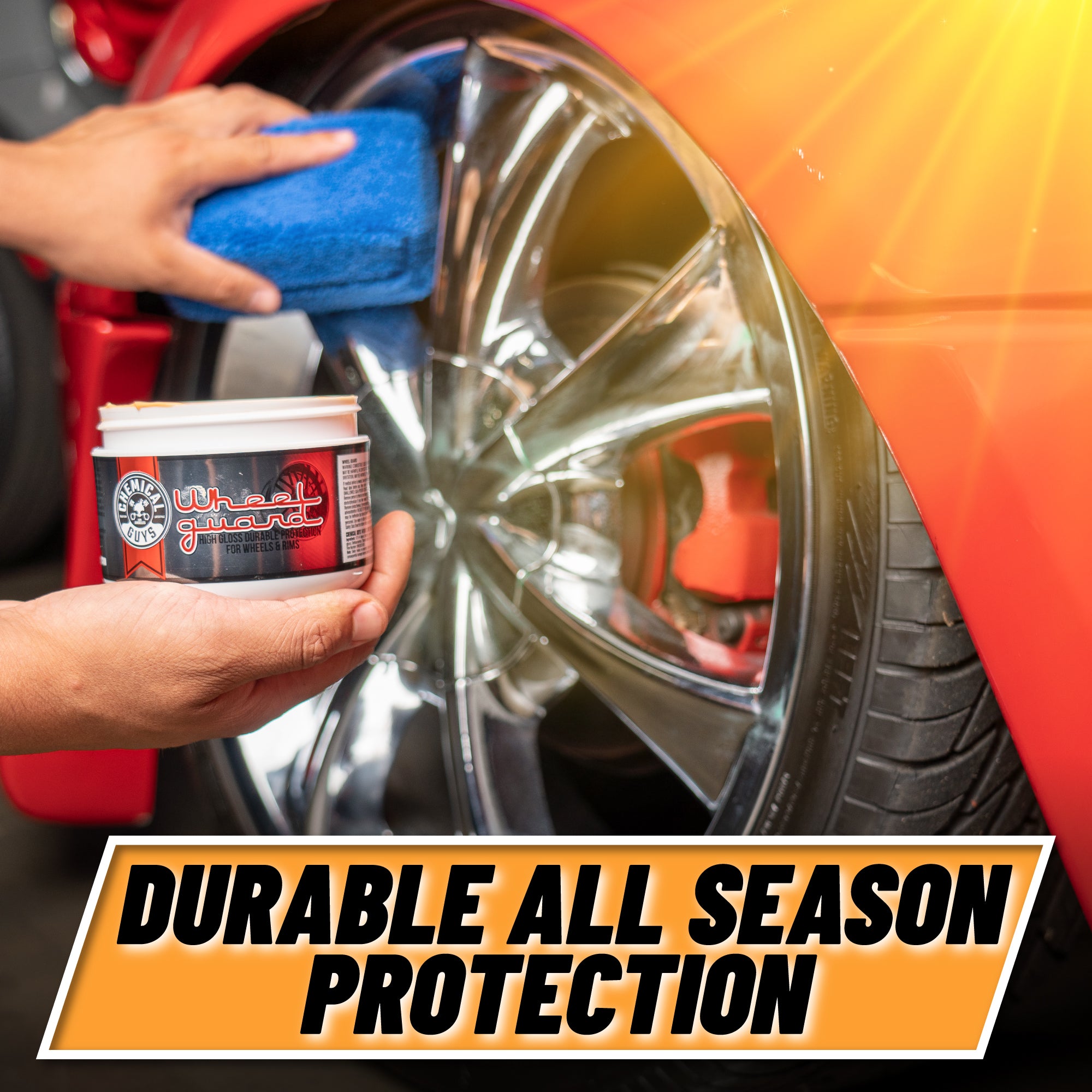 Wheel Guard is a specialty synthetic wax developed just for wheels and brake components to protect against brake dust. grime. dirt. mud. water. and more to keep wheels clean and shiny for longer.