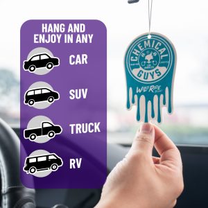 Chemical Guys Wild Ride Hanging Air Freshener is infused with a bold midnight cherry and vintage leather aroma that screams adrenaline and adventure; this exhilarating scent evokes the excitement of late-night escapades and adventure.?